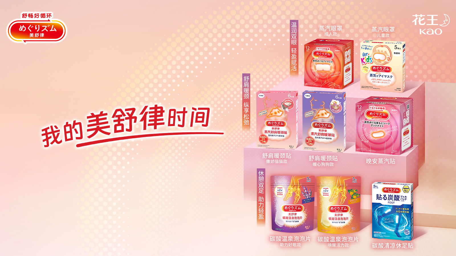 在“本土化战略”推进中,花王美舒律以国产展品为核心,交出亮眼本土化答卷。深入洞察到中国生活者因久坐、长时间使用电子设备而产生的肩颈放松需求,美舒律推出了专为中国市场定制的蒸汽舒肩暖颈贴,以4枚超薄发热体实现大范围发热,使暖意可覆盖多处肩颈关键穴位的同时,通过持续释放蒸汽热敷,满足用户对长时间、大范围肩颈温热放松的需求。美舒律也将花王积累超过40年的碳酸技术经验应用于本土化产品——碳酸温泉泡泡片,溶于水后能释放ppm值约为天然温泉2倍的碳酸,助力腿足温暖放松。美舒律正以细致观察和精准回应,用“为中国制造”的产品,带来更多日常生活中的贴心陪伴。