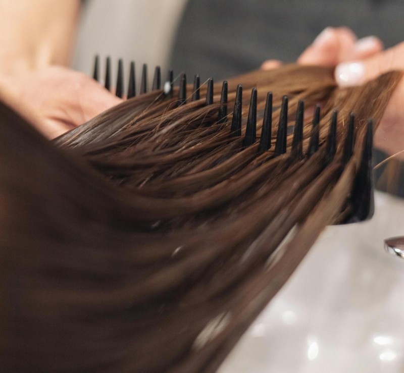 发丝受损的本质不是缺水,是缺结构。很多人以为头发干枯毛躁是因为缺水,于是拼命使用护发素、发膜、护发精油。但洗完吹干后,该毛躁还是毛躁,该细软还是细软。原因在于:健康发丝的核心是角蛋白与毛鳞片的完整结构。而频繁的化学染烫,会直接破坏毛鳞片的排列,并溶解毛皮质中的角蛋白,在发丝内部形成肉眼看不见的“空洞”。这就好比一面墙的砖块被掏空了一部分——外面刷再多的漆,墙依然是松的。发丝也是如此,空洞不填补,补水只是表面功夫。
